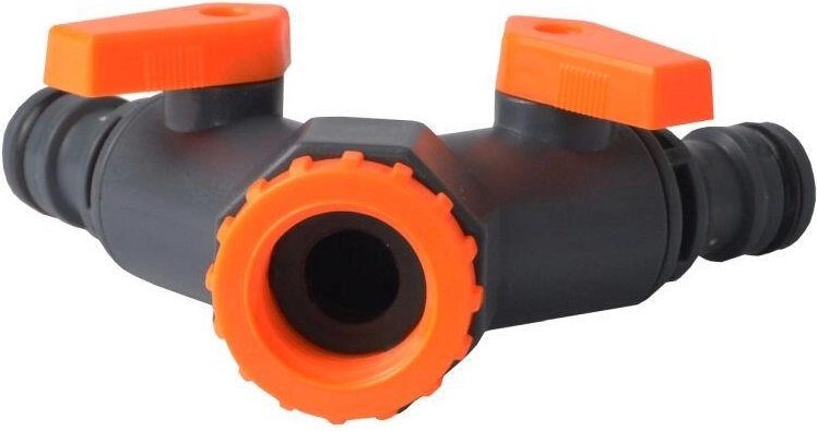 Spar tid og vand med Y-fordeleren, som gør det muligt at tilslutte to slanger til samme hane og styre dem uafhængigt. Det robuste plastikhus med behagelige vippehåndtag sikrer hurtig og præcis flowindstilling for hver gren.