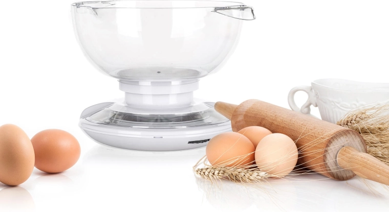 Vægten er kalibreret til 50 g inddeling og kan nøjagtigt måle ingredienser op til 5 kg. Takket være de kompakte mål 20 × 21 × 17 cm og vægten på 525 g kan den nemt opbevares selv i mindre køkkener. En ideel hjælper til bagning, dejtilberedning og daglig madlavning.
