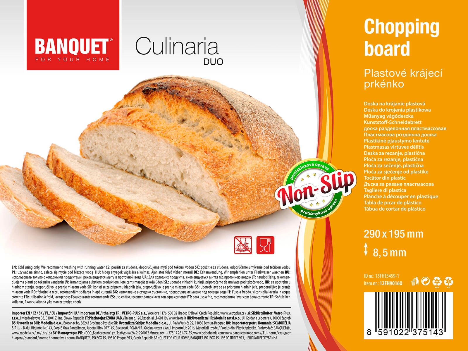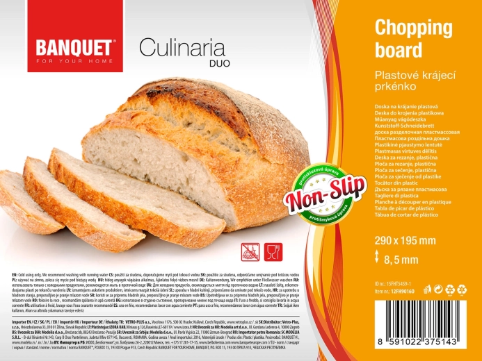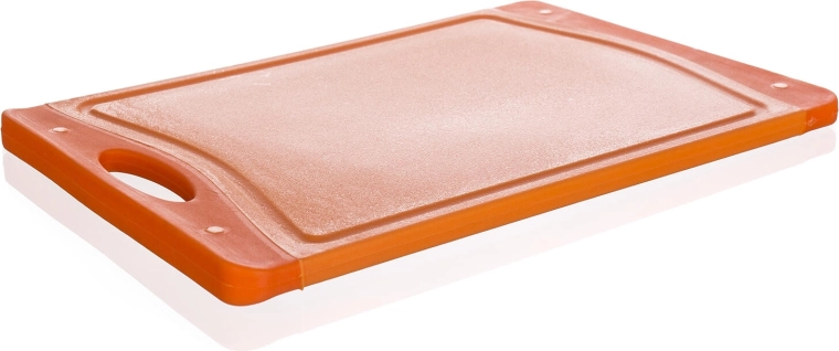 Brættet er fremstillet af plast af høj kvalitet, som er skånsom mod knivens æg, let at rengøre og modstandsdygtig over for daglig brug. Den praktiske omkransende rille opfanger saft fra frugt, kød eller grøntsager og hjælper med at holde arbejdsfladen ren.