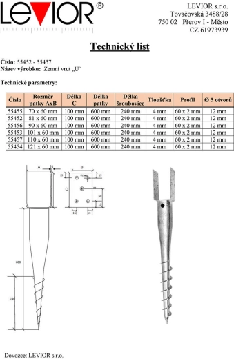 Jordskrue med U-beslag 700 × 70 × 60 × 100 mm, 4 mm