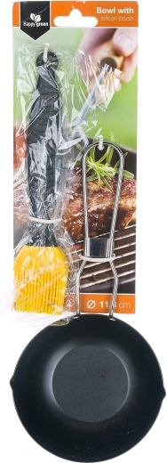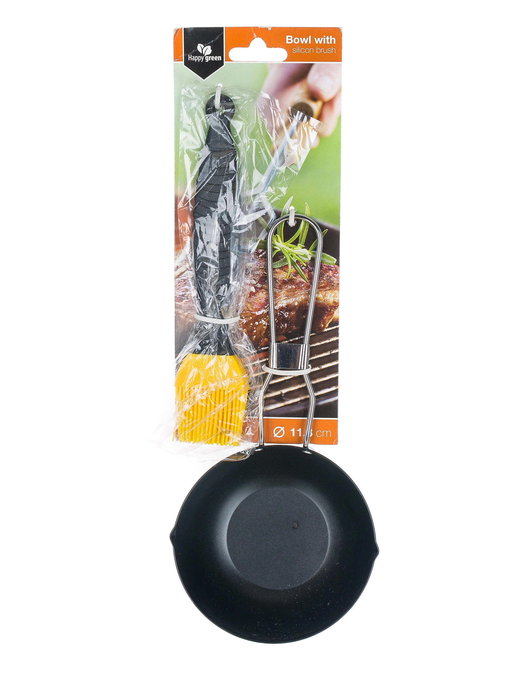 Nyd bekvem grillning med en marinadebakke med nonstick-belægning og en holdbar silikonepensel. Takket være den kompakte diameter på 11,8 cm er bakken perfekt til hurtig tilberedning og servering af marinader, saucer eller glasurer, mens penslen sikrer jævn påføring uden dryp.