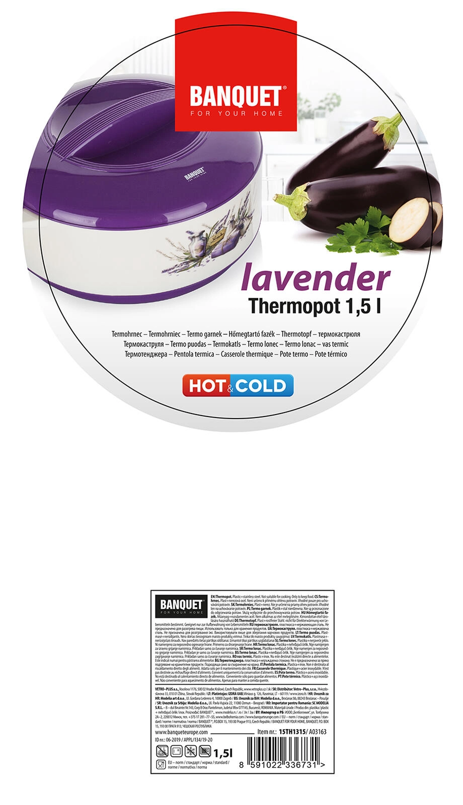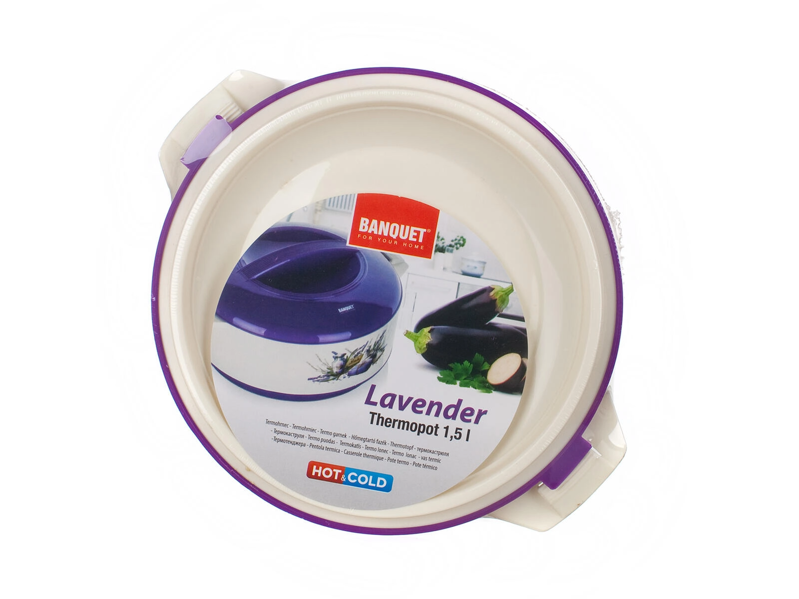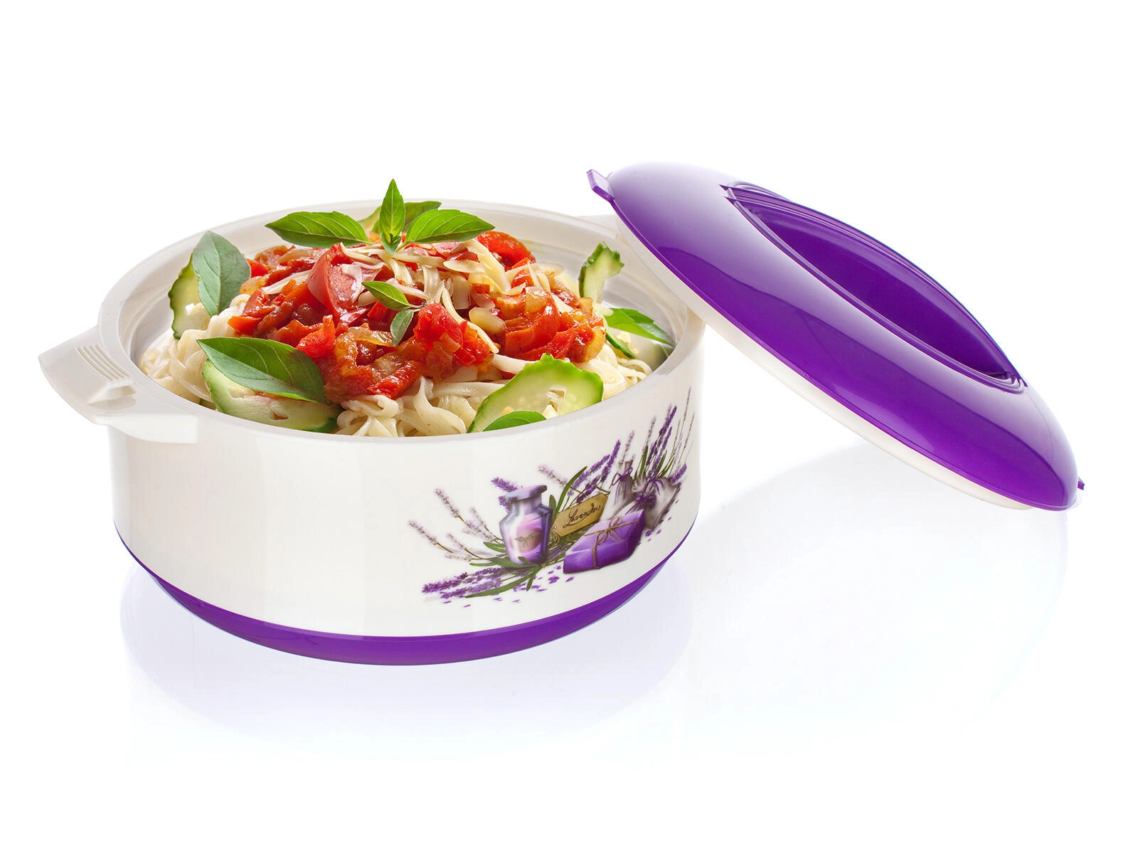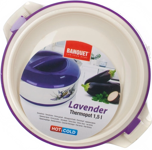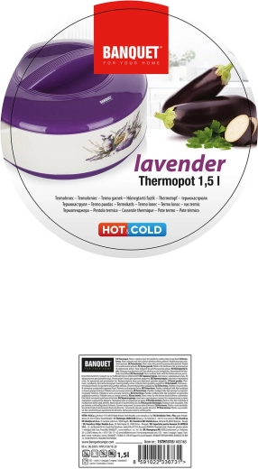 Den praktiske termoskål LAVENDER med et volumen på 1,5 l holder dine retter længe varme eller kolde takket være den kvalitetsindsats i rustfrit stål og PUR-isolering. Elegant lavendel-dekor, solidt låg og sidehåndtag gør servering og sikker transport af mad nemt.