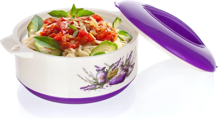 Den stilfulde termoskål LAVENDER er ideel til opbevaring og transport af færdiglavede retter. Takket være dobbeltvægsdesignet med PUR-fyld og indsats i rustfrit stål bevarer den den optimale temperatur på maden ved servering både hjemme og på farten. Det praktiske låg og de behagelige håndtag sikrer nem håndtering.