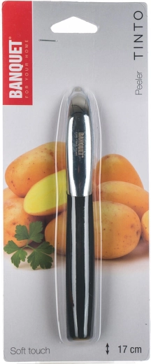 Praktisk og holdbar universalskræller TINTO med en længde på 17 cm, ideel til skrælning af frugt og grøntsager. Den har en forkromet metaloverflade for lang levetid og et skridsikkert plastikhåndtag for sikker og komfortabel betjening.