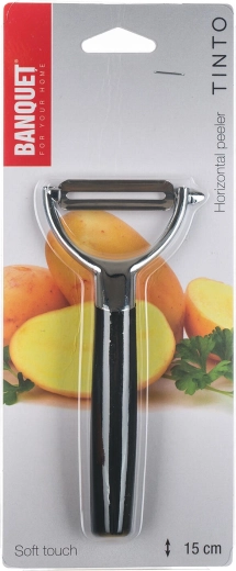 Praktisk Y-skræller TINTO med en tværgående 5 cm klinge til nem skrælning af både grøntsager og frugt. Den holdbare metalklinge og det skridsikre plastgreb sikrer komfortabel og sikker brug. Perfekt til gulerødder, agurker, peberrod og andre aflange grøntsager.