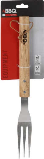 Denne grillgaffel er en pålidelig hjælper for enhver grillentusiast. Spidserne i rustfrit stål med en tykkelse på 1,4 mm trænger let ind i kødet og muliggør præcis vending uden unødvendig anstrengelse. Det lange håndtag i træ med gummielementer sikrer et sikkert og behageligt greb, selv når grillen er glohed.