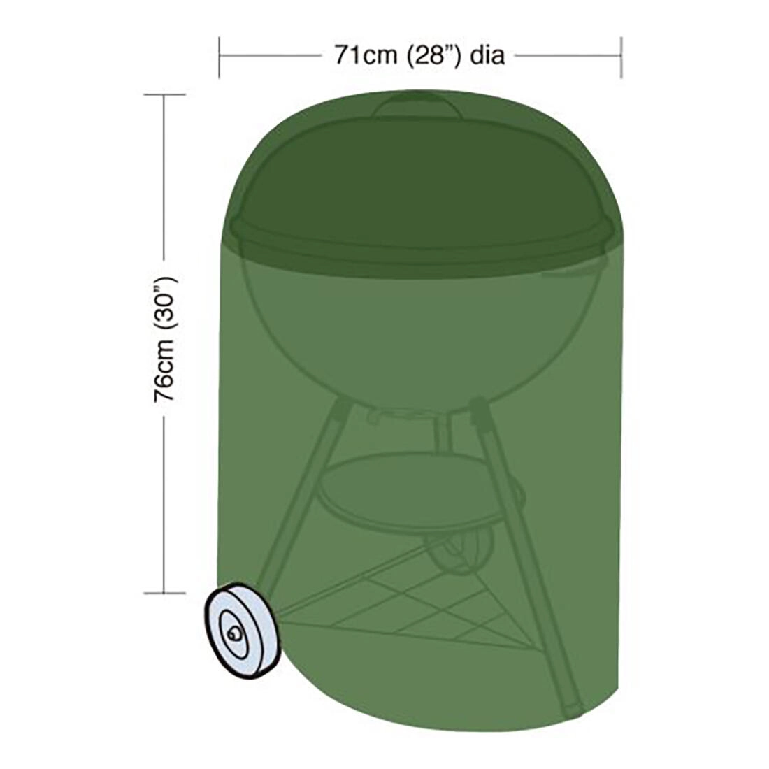 Det holdbare dækken til rund grill i størrelsen 71 × 76 cm af PE-materiale (90 g/m²) beskytter pålideligt din grill mod regn, støv og vind. Takket være den stærke og lette konstruktion er det nemt at sætte på og vedligeholde, samtidig med at det forlænger grillens levetid under opbevaring og uden for sæsonen.