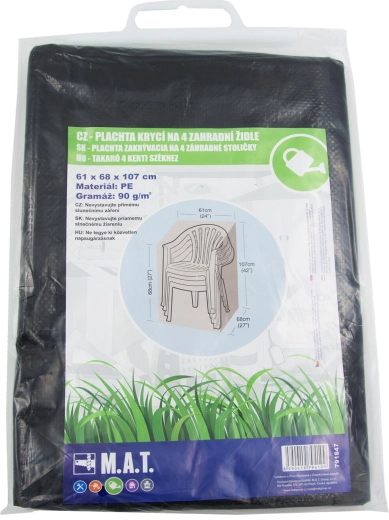 Robust overtræk til langtidsafdækning af 4 havestole, beskytter pålideligt mod regn, støv og vind. Let, men stærk polyethylen (PE) 90 g/m² i en universel grøn farve er nem at vedligeholde og forlænger levetiden på dit havemøbelsæt.