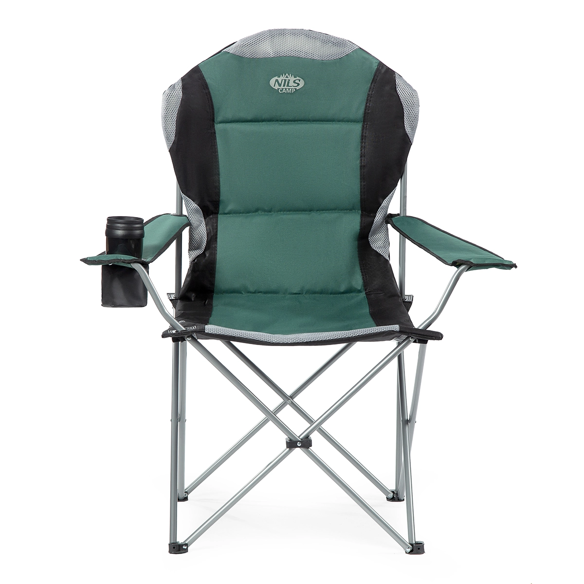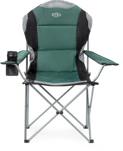 Den sammenklappelige stol NILS Camp er designet til maksimal komfort og holdbarhed i naturen. Robuste stålprofiler med en diameter på 16 mm sikrer stabilitet, mens det dobbeltlagede, polstrede 600D Oxford-materiale med åndbare paneler sørger for komfort selv ved længere tids brug. Skridsikre fødder og en integreret kopholder sikrer, at forfriskninger altid er inden for rækkevidde.