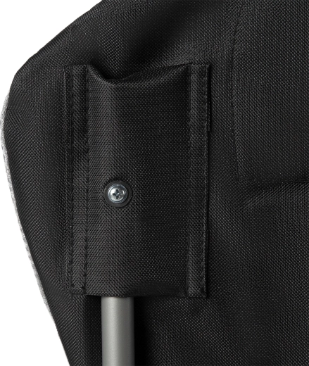 Den praktiske kopholder holder flaske eller kop inden for rækkevidde. Den sammenklappelige mekanisme og den medfølgende transporttaske med skulderrem gør det nemt at bære og opbevare – stolen foldes hurtigt til kompakte mål.