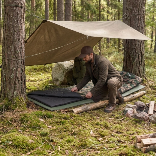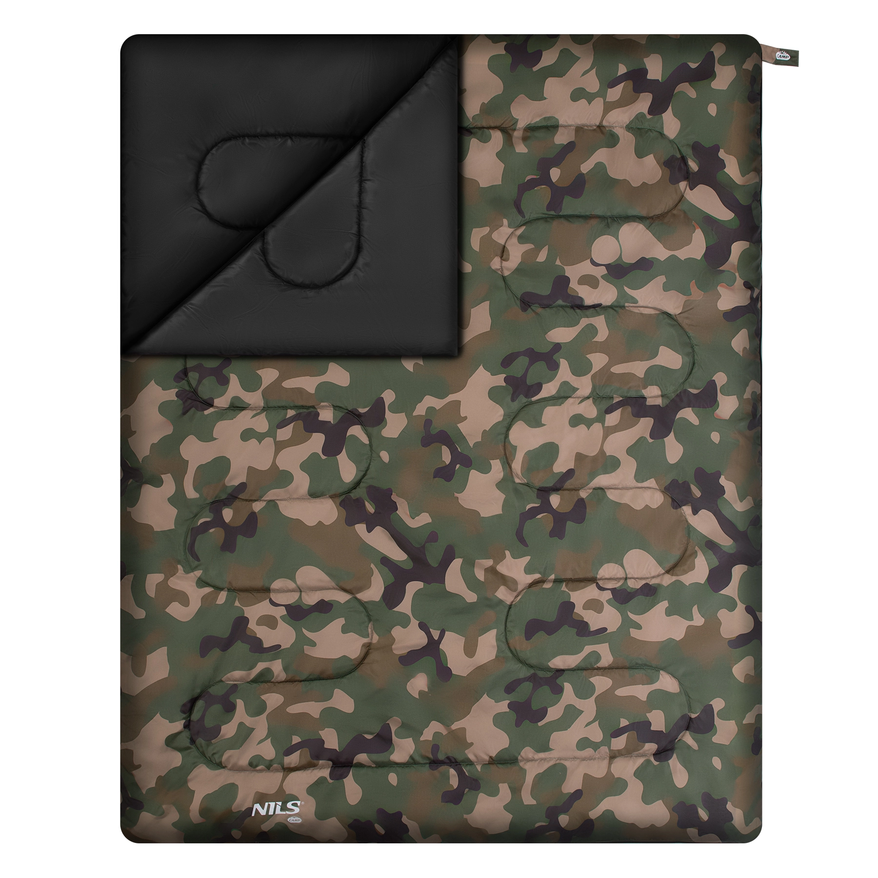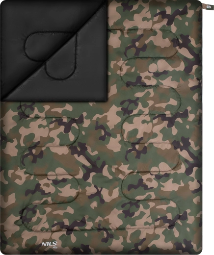 Let og behagelig tæppe-sovepose fra NILS Camp i camo-design, ideel til camping, teltture og overnatning under åben himmel. Takket være materialer af høj kvalitet tilbyder den pålidelig varmeisolering, mulighed for fuld udlynning til tæppe og sammenkobling af to poser til én. Den tovejs lynlås med bred manchet og velcro sikrer sikker lukning uden at glide op af sig selv.