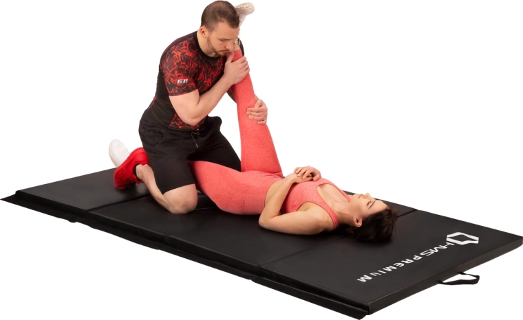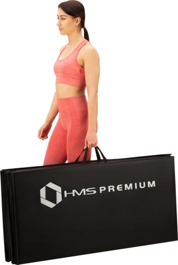 Den alsidige sammenklappelige måtte HMS Premium MGS01 med en tykkelse på 5 cm giver fremragende affjedring, komfort og beskyttelse under træning. Med målene 240 × 120 cm er den ideel selv til træning for to, har en skridsikker overflade, er let at rengøre og takket være bærehåndtag kan du tage den med overalt. Velcro langs kanterne muliggør sammenkobling af flere måtter for at skabe en større flade.