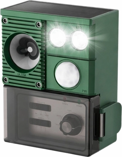 Ultralyds- og akustiske signaler kombineret med kraftige LED-dioder hjælper effektivt med at afskrække uønskede dyr uden fysisk skade.