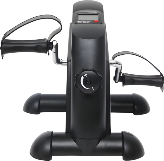 Den rehabiliterende mini motionscykel 2-i-1 er en alsidig træner til både under- og overkrop. Placer den under bordet for bentræning eller på bordet for at styrke arme og skuldre. Takket være den trinløst justerbare modstand kan du nemt tilpasse intensiteten fra skånsom genoptræning til en lidt mere frisk hjemmetræning.