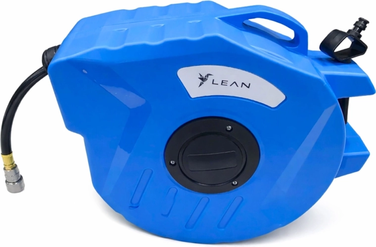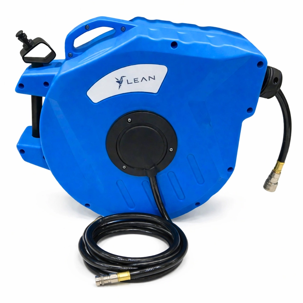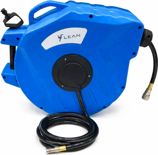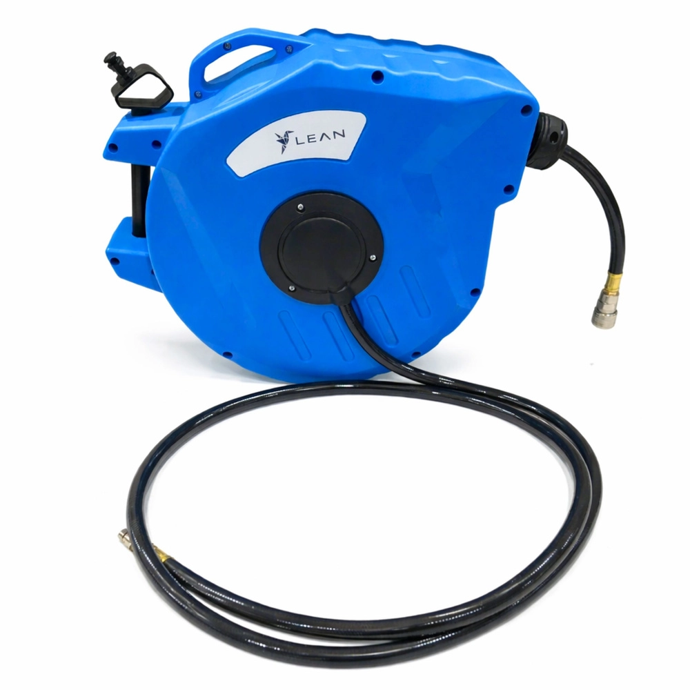 Hold arbejdspladsen ryddelig og spar tid med den automatiske oprullende slangerulle. Det robuste plastkabinet beskytter mekanismen, styresystemet sikrer jævn udtrækning og oprulning, og det drejelige beslag gør arbejdet lettere i forskellige retninger. Slangen af elastisk PVC er velegnet til kompressorer og pneumatisk værktøj.