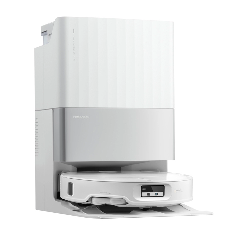 Avanceret LiDAR-navigation med automatisk højdejustering af sensoren og Reactive AI med RGB-kamera og struktureret lys genkender op til 108 objekttyper. Tilstanden Vacuum Carpet First støvsuger først tæpperne og moppe derefter; for dybderengøring udføres krydskørende passager med øget effekt. Station 3.0 tømmer beholderen, fylder vand på, vasker moppepuderne med varmt vand (op til 75 °C) og tørrer dem med varm luft (45 °C) for at forhindre lugt og mug. Styring lettes via Roborock-appen, stemmeassistenter og den indbyggede offline stemmeassistent “Hello Rocky”.
