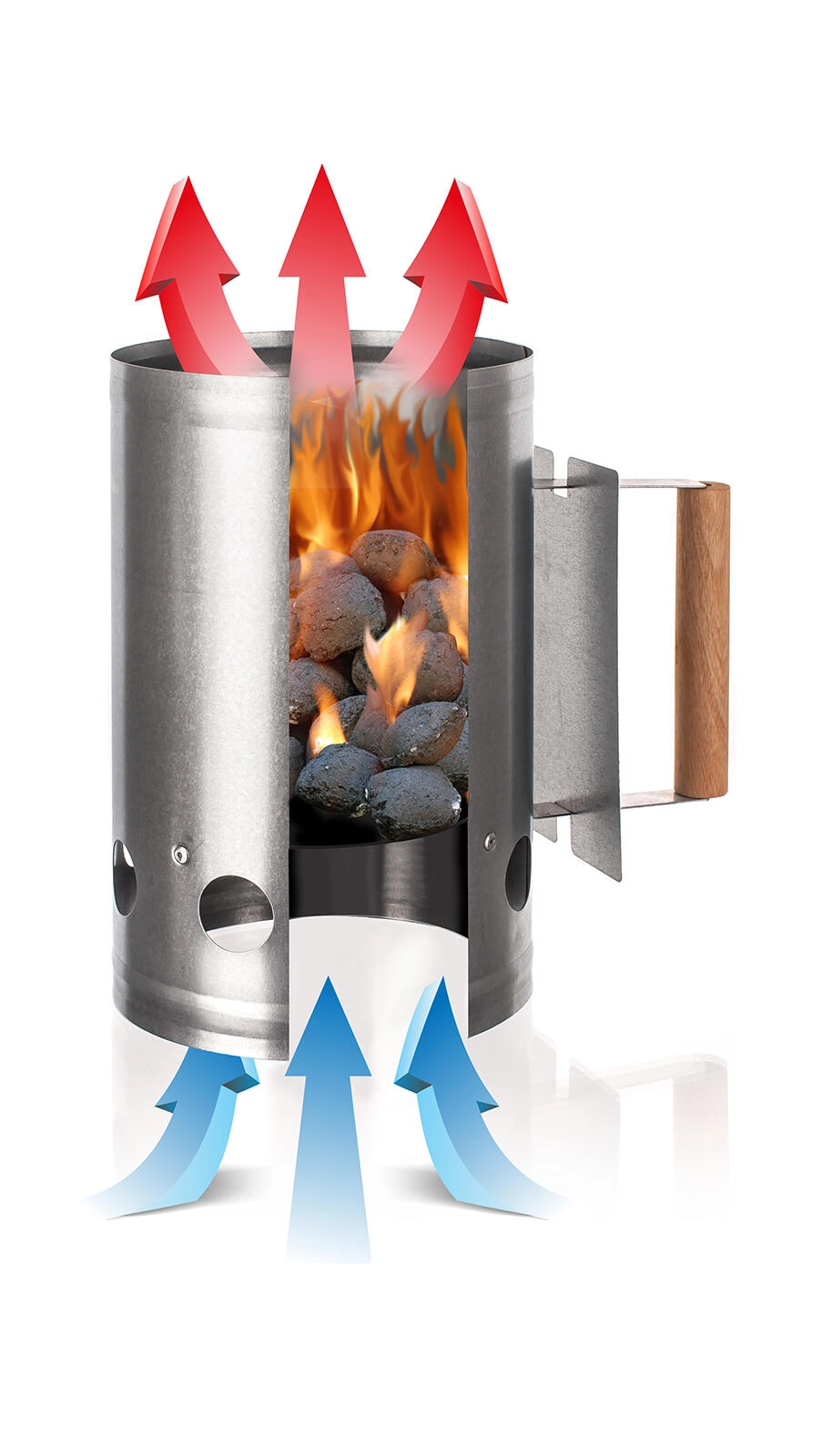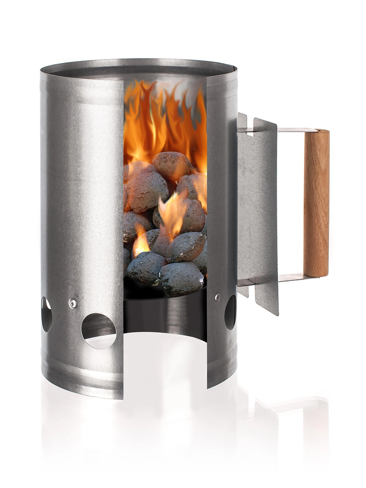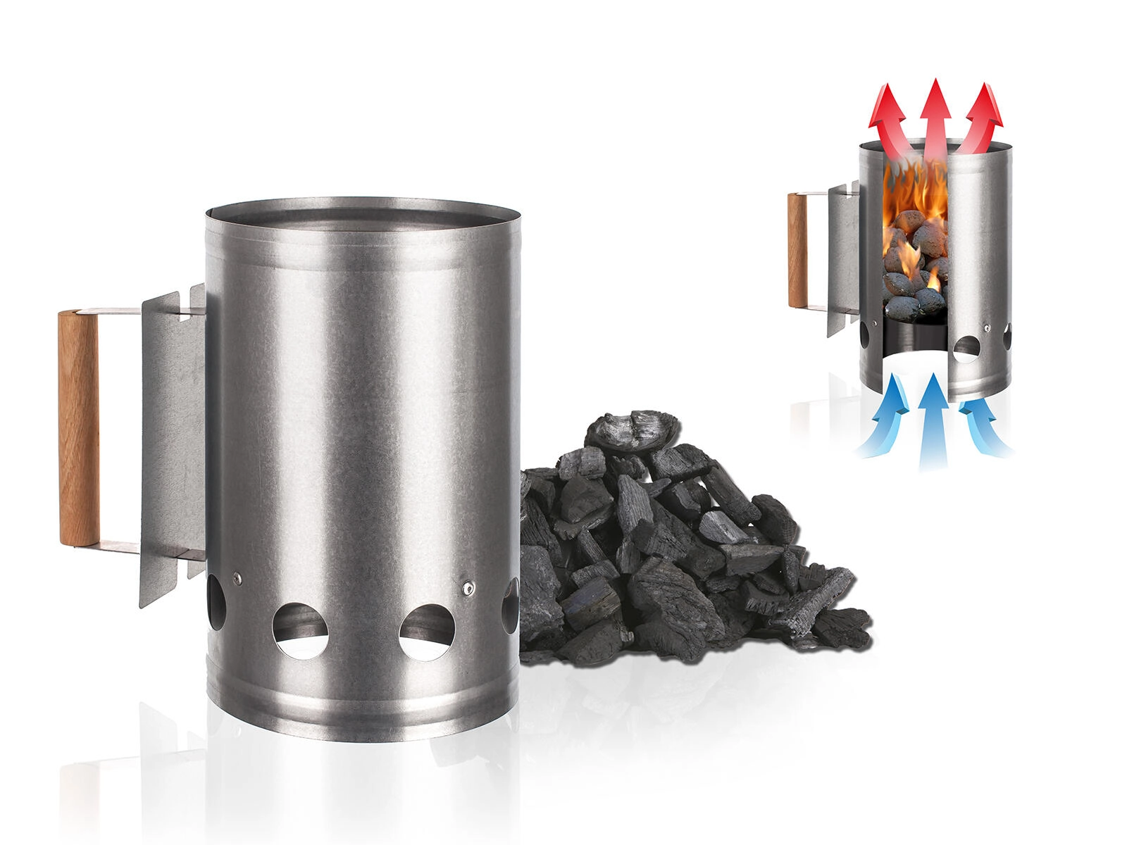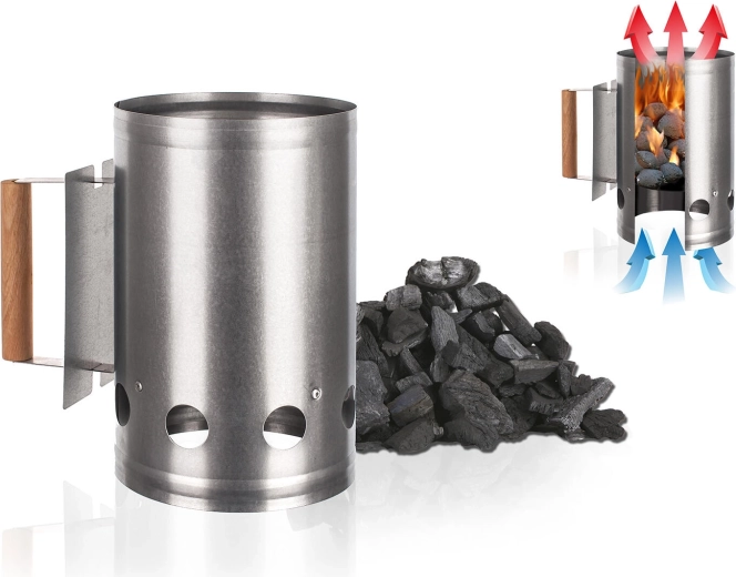 Ikke mere lang ventetid på glødende kul. Denne galvaniserede tændstarter med en diameter på 16,5 cm og en højde på 28 cm udnytter skorstenseffekten til hurtig gennembrænding og opvarmning af kul og briketter. Takket være de gennemtænkte ventilationshuller strømmer luften jævnt, hvilket fremskynder antændingen og reducerer forbruget af optændingsmiddel.