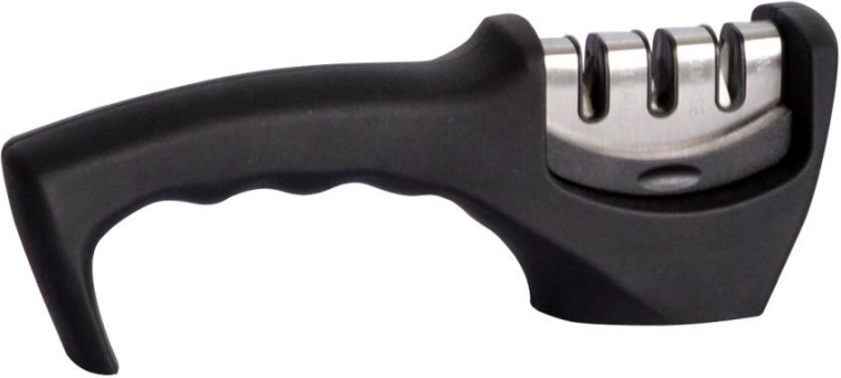 Praktisk knivsliber med ergonomisk håndtag til daglig brug. Tilbyder tre slibetringrov, fin og til keramiske knive. Takket være den stabile konstruktion og det behagelige greb gendanner den nemt og hurtigt skarpheden på køkkenknive.