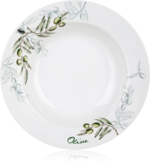 Sættet er designet til moderne hjem – sikkert til mikrobølgeovn og nemt at vaske i opvaskemaskine. Det fine olivendekor skaber en middelhavsatmosfære og et elegant udtryk, der passer til de fleste bordopdækninger.
