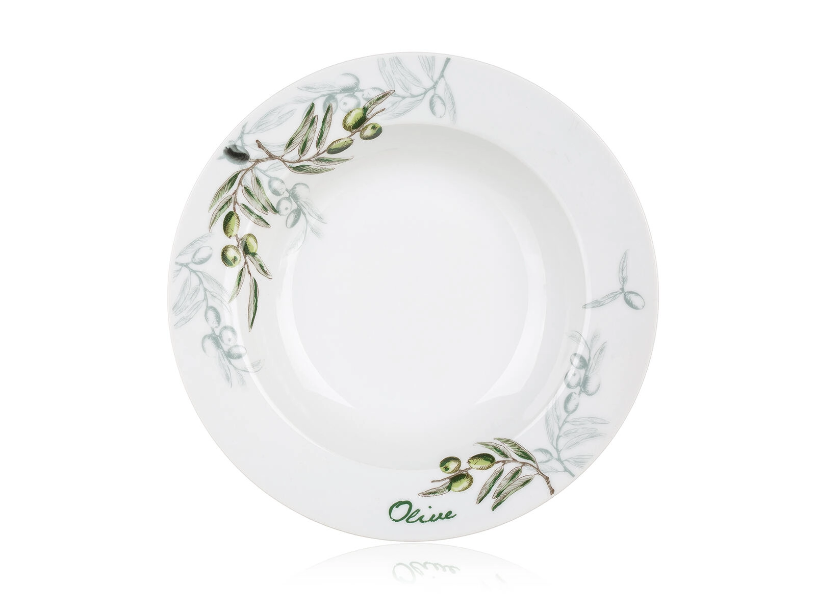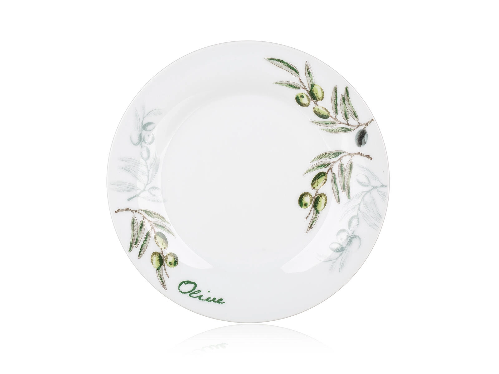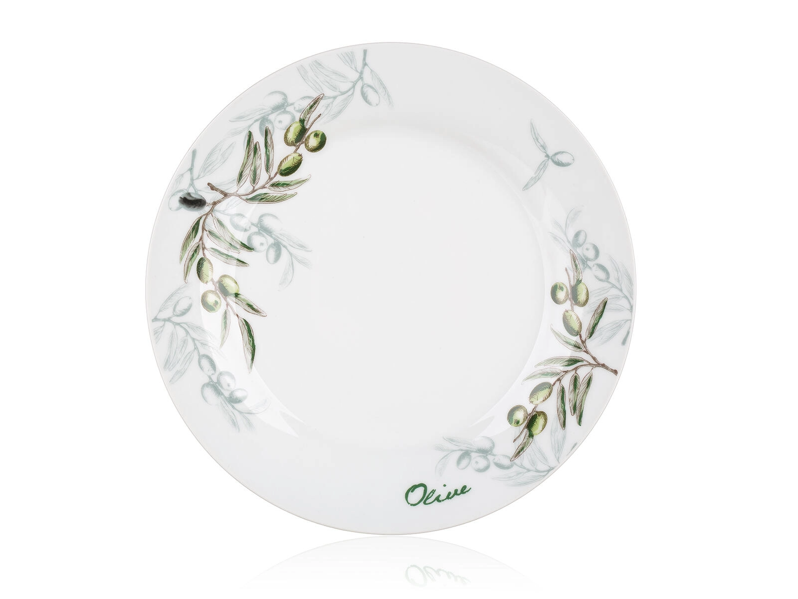 Det diskrete olivenmotiv i grøn-grå nuancer lyser ethvert bord op og er let at kombinere med andet service og dekorationer.