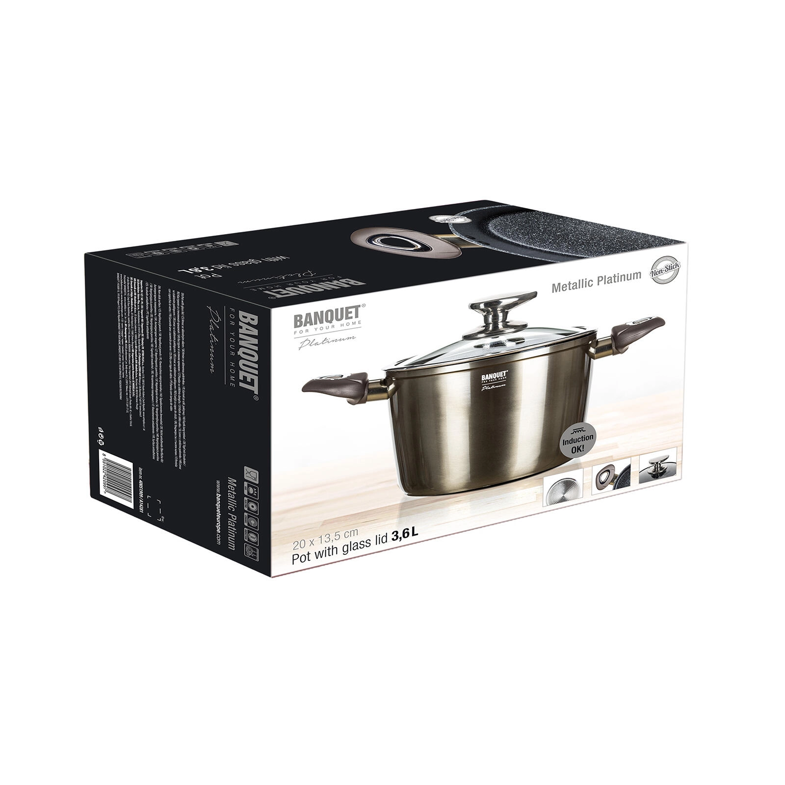 Alsidig gryde med volumen 3,6 l og diameter 20 cm i METALLIC PLATINUM-kollektionen, ideel til daglig madlavning. Tilbyder en meget slidstærk nonstick-belægning, fuldt induktionsbund for hurtig varmeoverførsel og et glaslåg med ventil til kontrol af madlavningen. Ergonomiske soft‑touch-håndtag sikrer et sikkert greb, mens det robuste smedede aluminiumskorpus og den kulstof-metallic ydre coating giver stil og lang levetid.