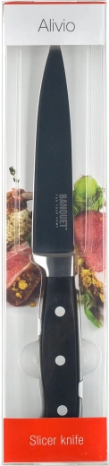 Den praktiske skærekniv ALIVIO med en samlet længde på 28,5 cm og et blad på 15 cm er ideel til præcis skæring i skiver af kød, ost og grøntsager. Det holdbare rustfri ståldesign sikrer lang levetid, skarpe og rene snit samt behagelig daglig brug i ethvert køkken.