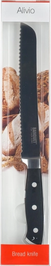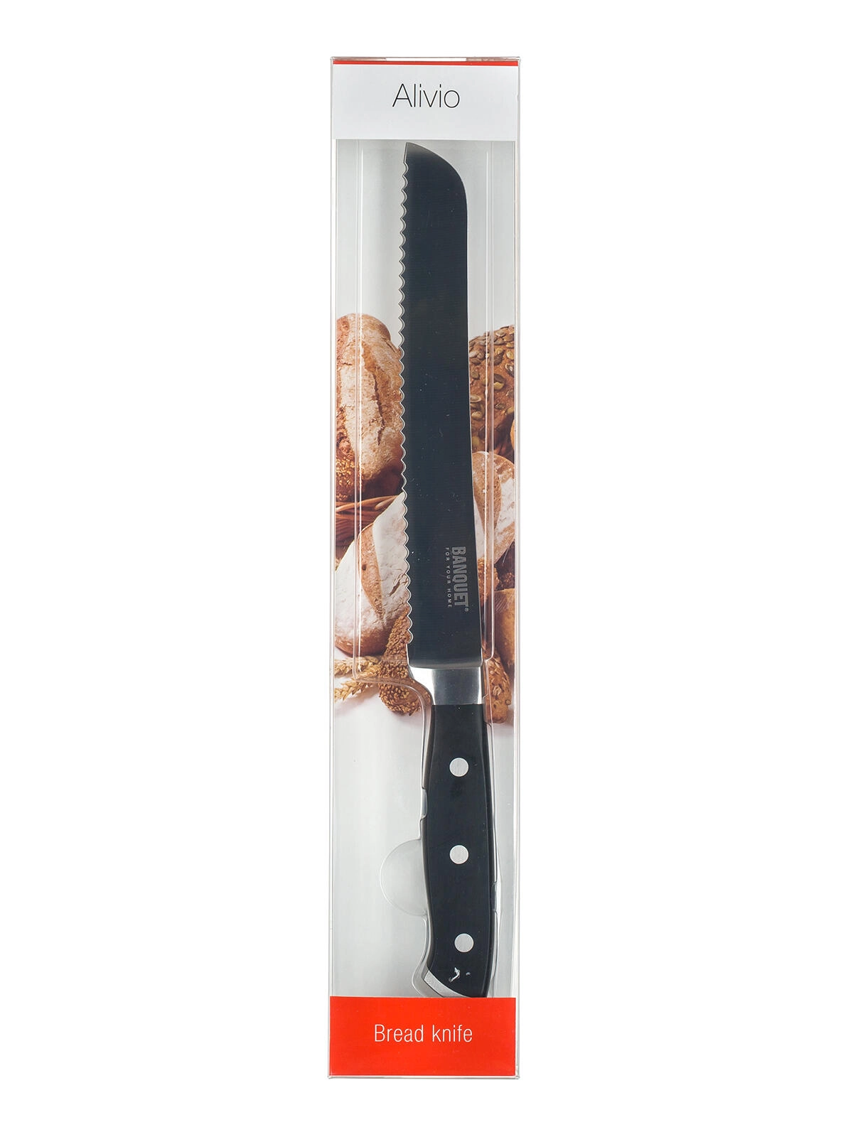 Brødkniven ALIVIO er designet til præcis og komfortabel skæring af alle typer bagværk – fra sprøde brød til fine toasts. Rustfri klinge på 20 cm med bølget (savtakket) æg klarer skorpen uden at rive og unødigt smuldre, mens den bløde krumme forbliver intakt.