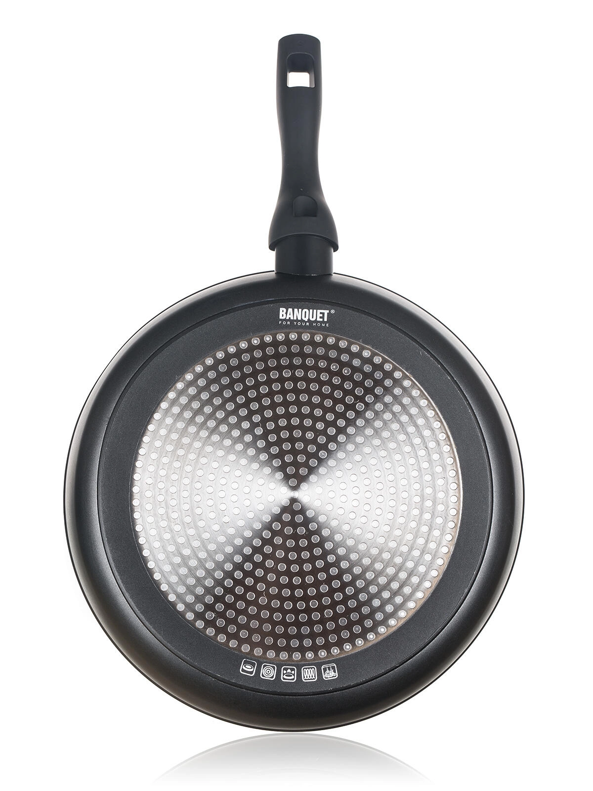 Den specialudviklede bund med lasergraverede piktogrammer er egnet til gas, el, glaskeramik og induktion.