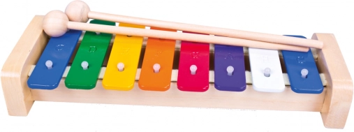 Metallameller på en solid træbase giver en ren klang og glæde ved de første melodier. Der medfølger 2 køller til øjeblikkelig spil og rytmetræning.