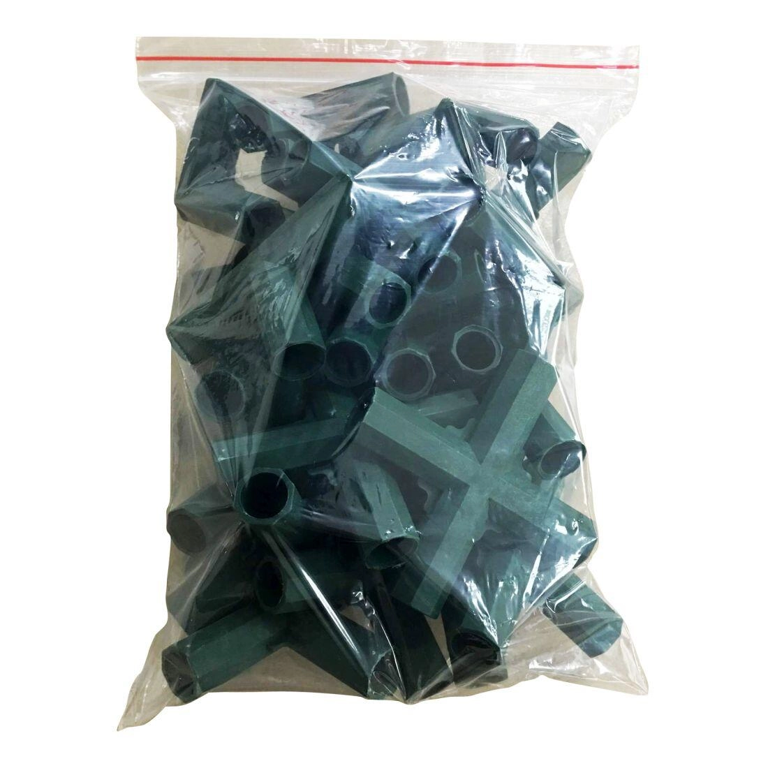 - Komplet pakke – 24 stk. plastkoblinger + 4 stk. pløkker med snor.