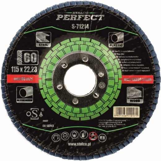Universel STALCO lamelskive med diameter 115 mm, centerhul 22,23 mm og korn 40 til hurtig og effektiv slibning. Velegnet til arbejde på stål og rustfrit stål, tilbyder høj materialefjernelse, lang levetid og stabil ydeevne ved daglig brug.