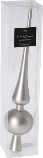 Fuldend looket på dit juletræ med en klassisk top i en universel sølvfarve. Med sin højde på 29 cm er den markant uden at dominere pynten, og takket være de blandede overflader kan du nemt matche resten af udsmykningen. Ideelt valg til både moderne og traditionelle arrangementer.
