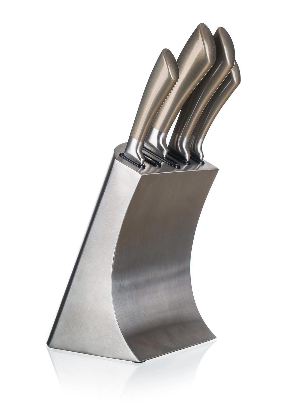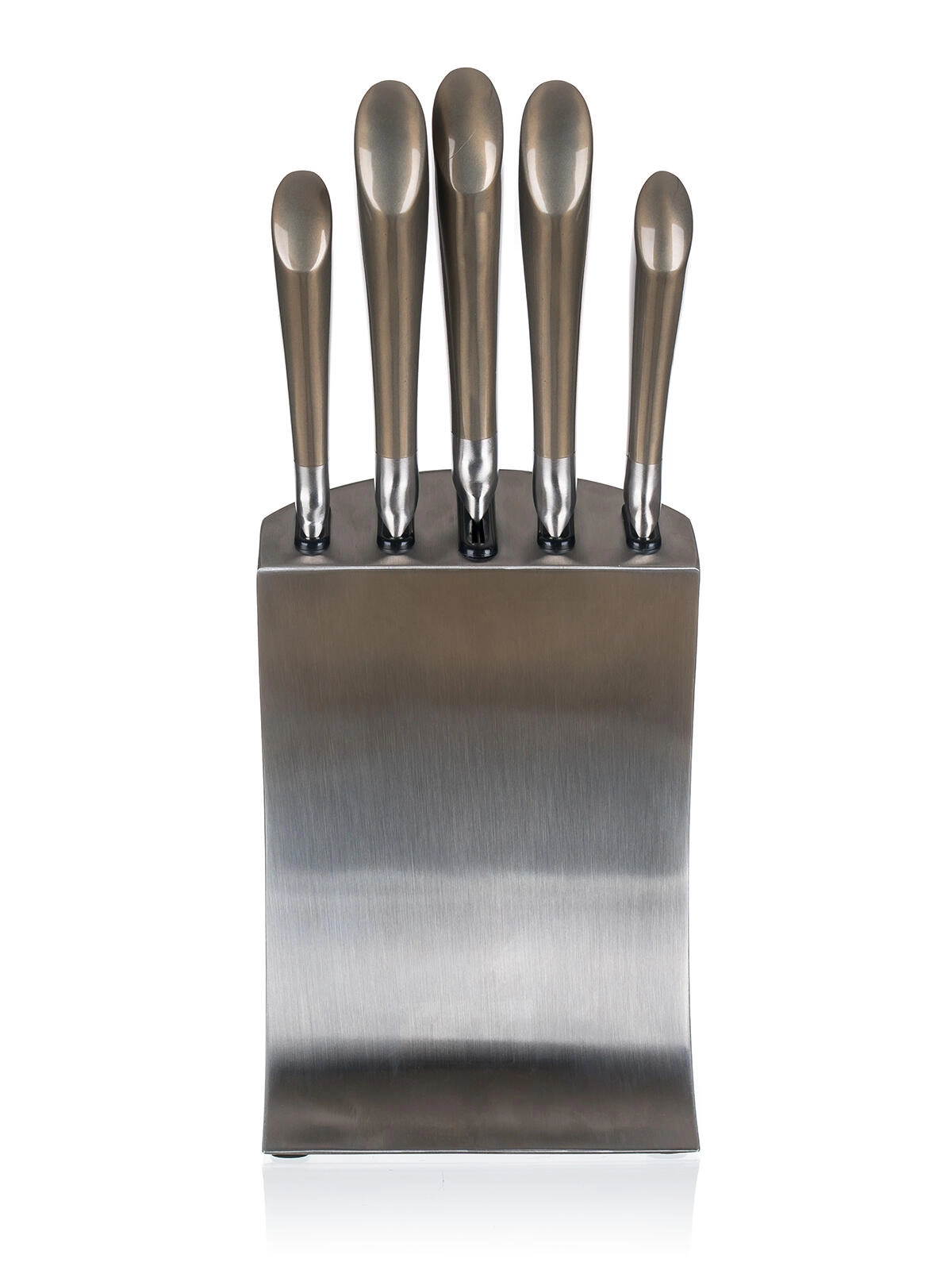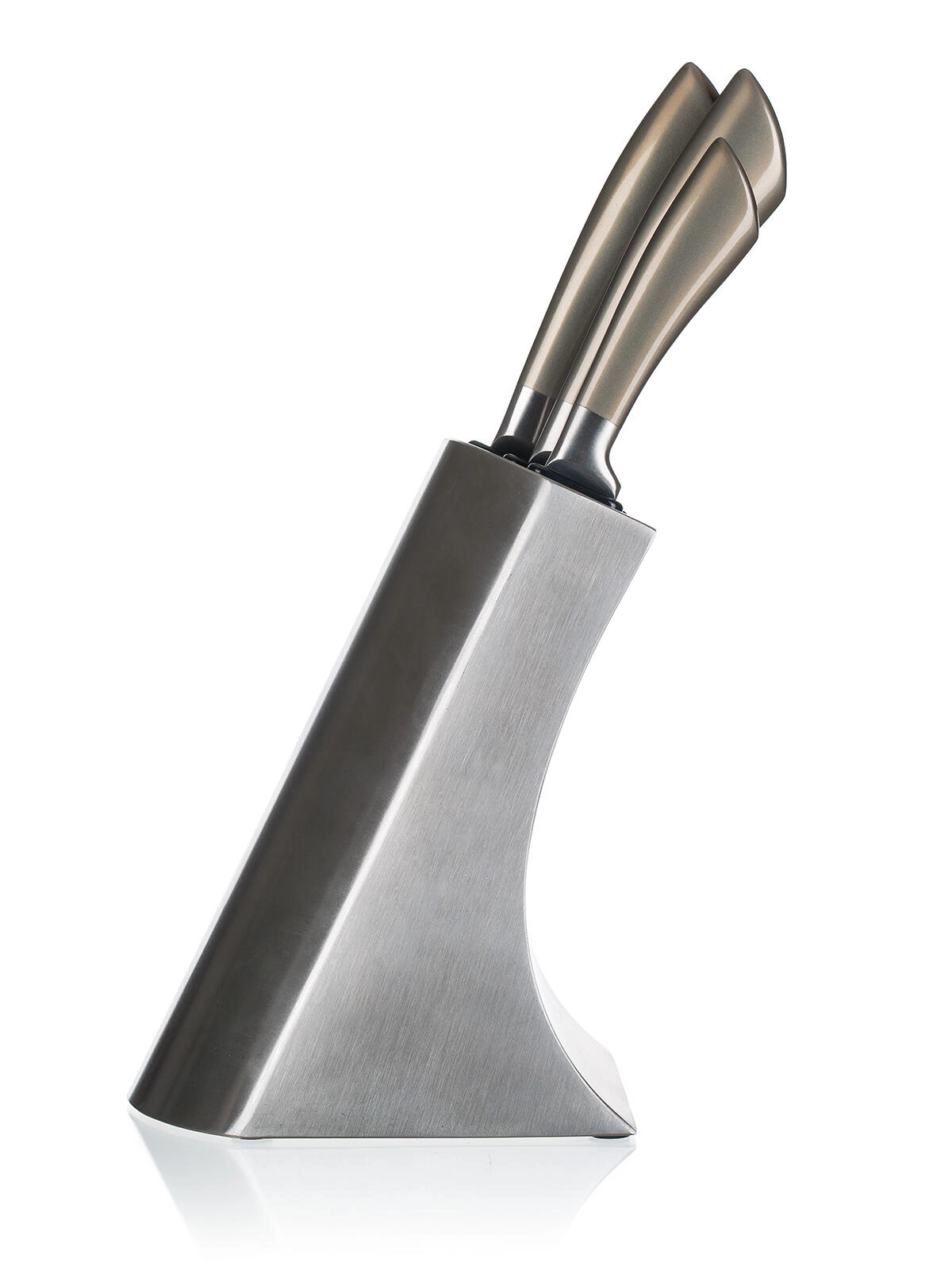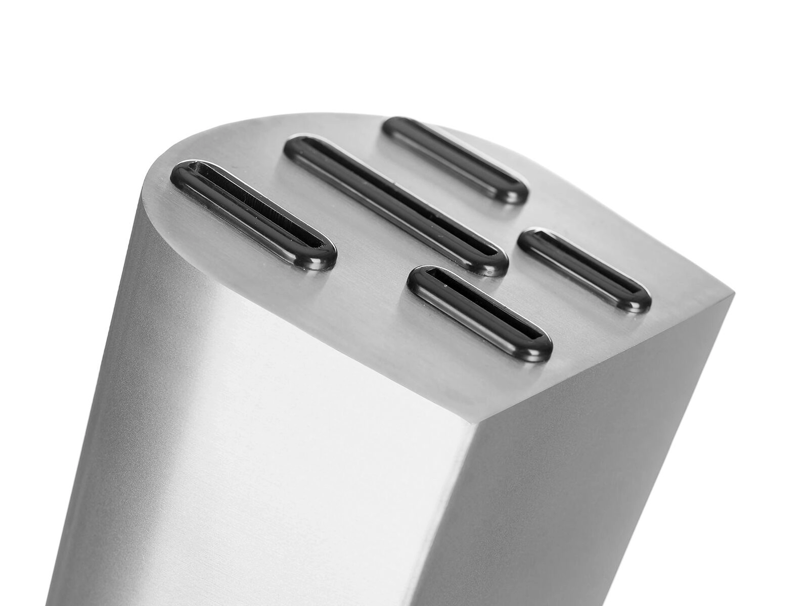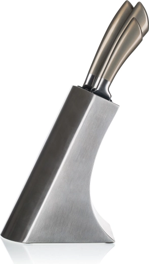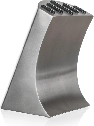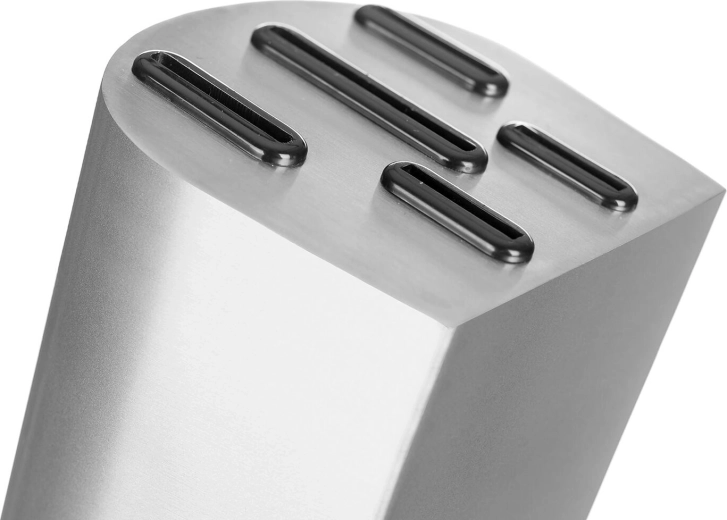 Den elegante metalblok med skridsikker base organiserer alle knive, beskytter deres æg og sikrer hurtig adgang under madlavning.