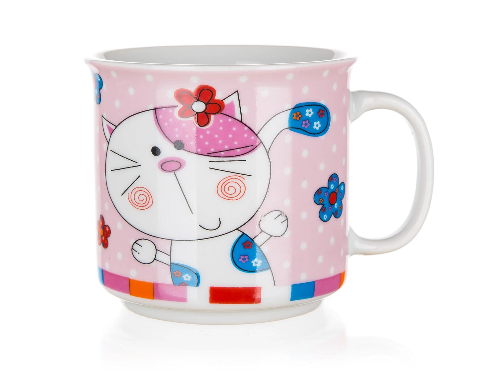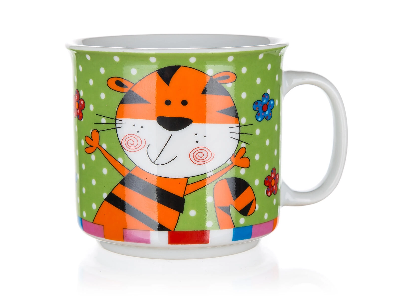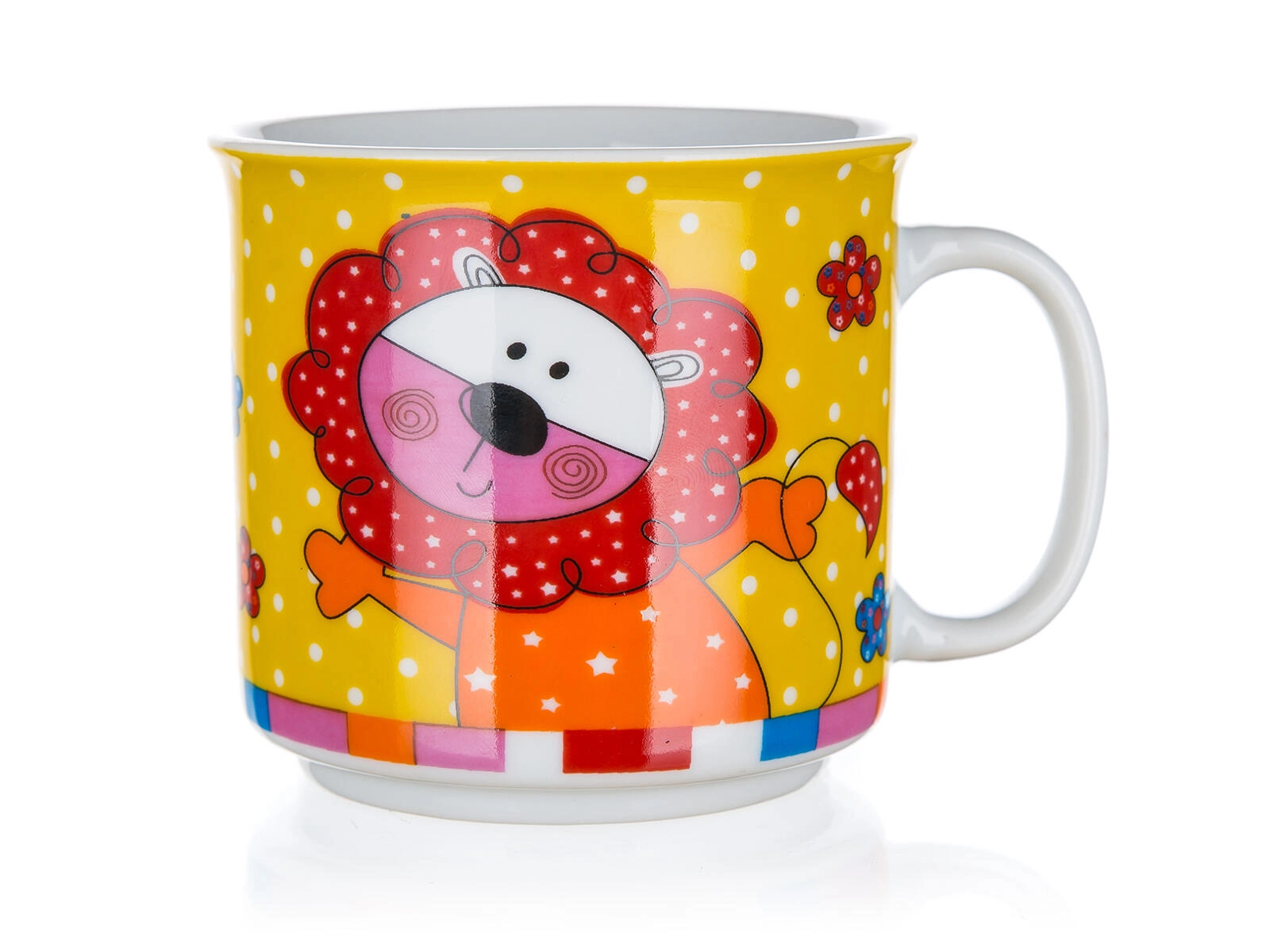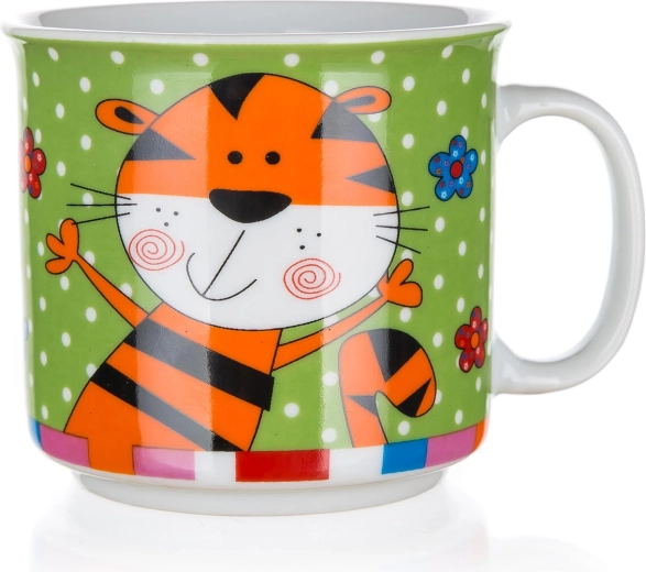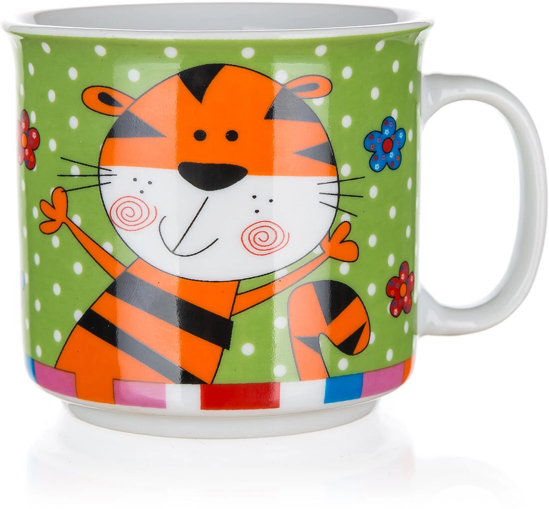 Det søde keramiske krus Animals gør både morgenmad og mellemmåltider sjovere. Børn vil elske de farverige motiver af hund, løve, lille tiger og kat, mens forældre sætter pris på den praktiske vedligeholdelse og holdbarheden. Den glatte glaserede overflade er let at rengøre, og krusets hank ligger godt i hånden.