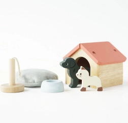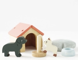 Oplev det smukt udførte sæt af træ-kæledyr fra Le Toy Van – det ideelle tilbehør til dukkehuse og legemiljøer. Etisk fremstillede legetøj af bæredygtige materialer giver sikker og tidløs underholdning for børn fra 2 år.
