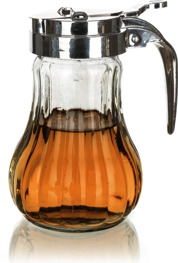 Takket være silikonepakningen er indholdet beskyttet mod utilsigtet spild og bevarer sin friskhed. Den stilfulde kombination af glas og rustfrit stål passer både i moderne og klassiske køkkener – perfekt til honning, fløde, mælk og ahornsirup.