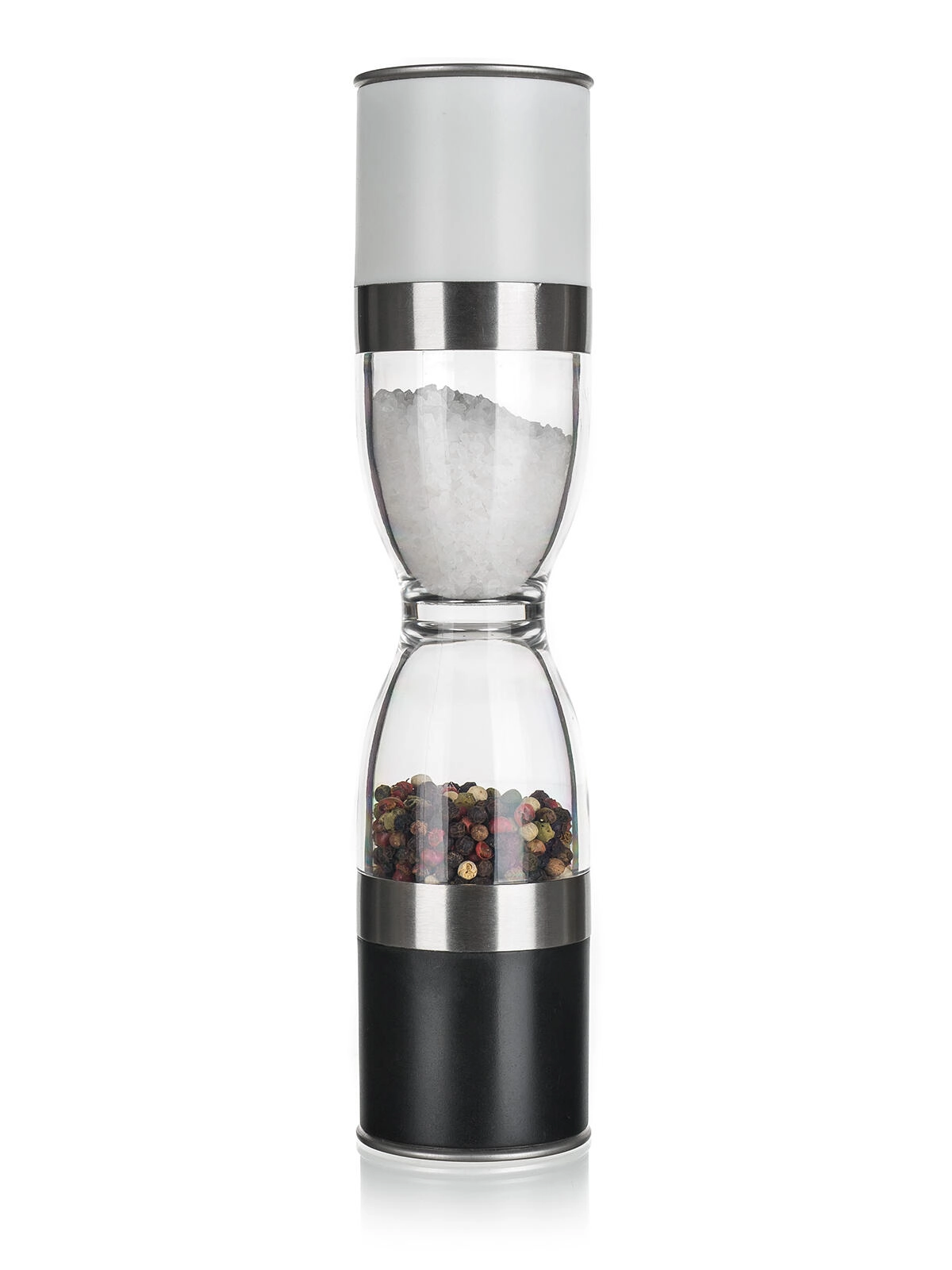 Spar både plads og tid: én side til salt, den anden til peber. De gennemsigtige kamre gør det nemt at se mængde og type krydderi ved første øjekast.