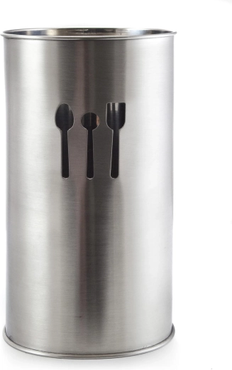 Praktisk holder i rustfrit stål til køkkenredskaber med en diameter på 10 cm og en højde på 18,5 cm, så dine skeer, øser og paletknive altid er lige ved hånden. Takket være det holdbare materiale er den let at rengøre, hygiejnisk og stabil, så den passer perfekt på enhver køkkenbordplade.