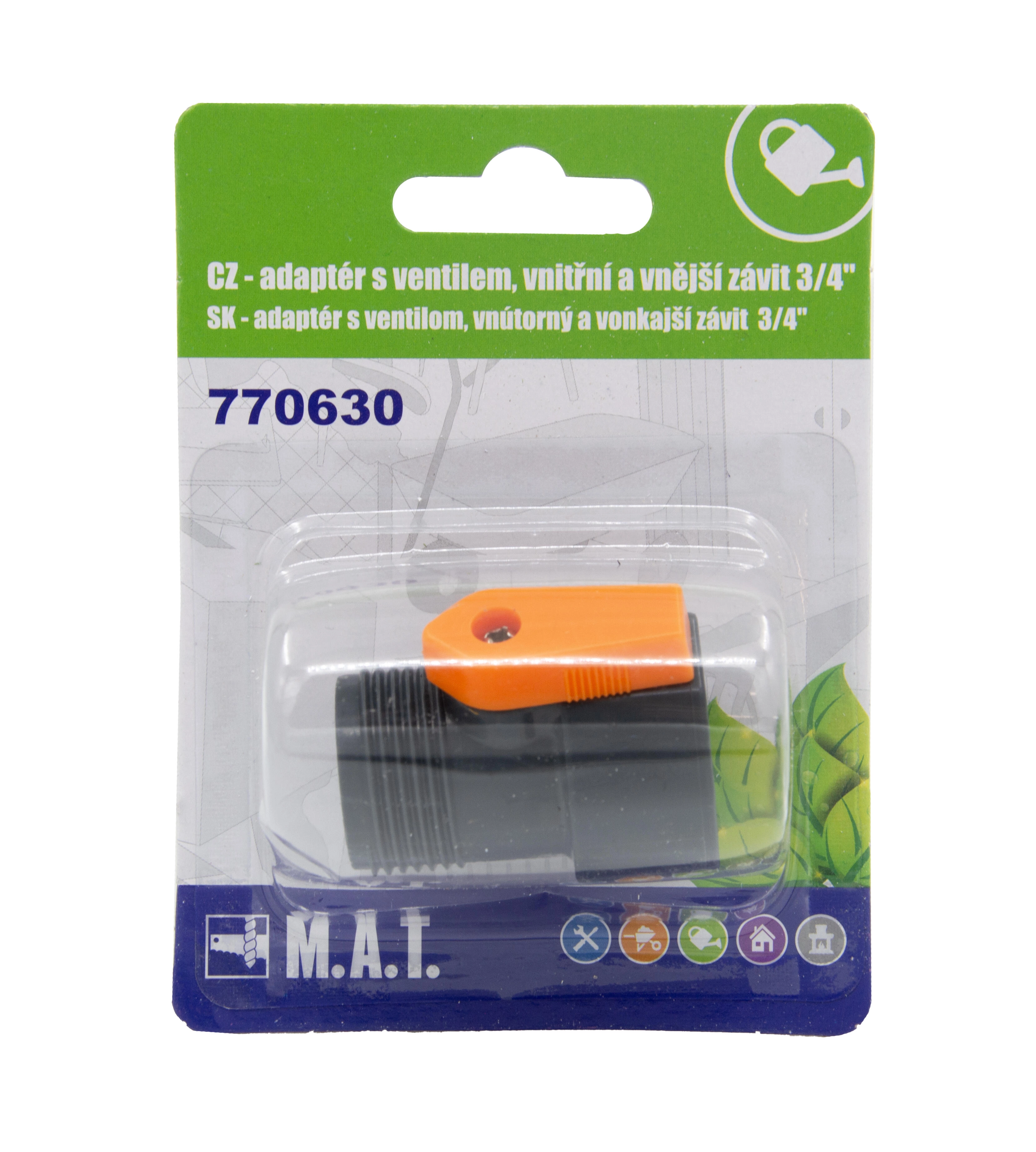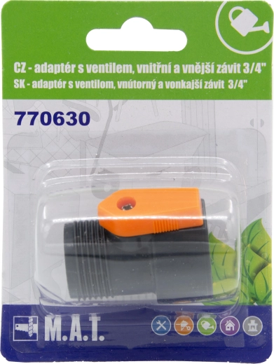 Universel adapter med ventil til hurtig og sikker tilslutning af haveslanger, haner og vandingssystemer. Takket være kombinationen af 3/4" indvendigt og udvendigt gevind dækker den et bredt anvendelsesområde i haven og omkring huset. Den integrerede afspærringsventil gør det nemt at regulere eller helt stoppe vandgennemstrømningen uden at skulle afkoble.