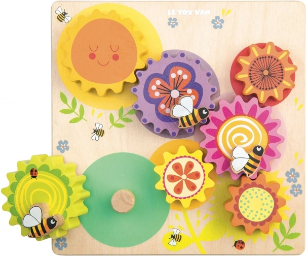 Gearene er udsmykket med smukke illustrationer af bier og blomster, som stimulerer børns fantasi og udvikler sanserne.