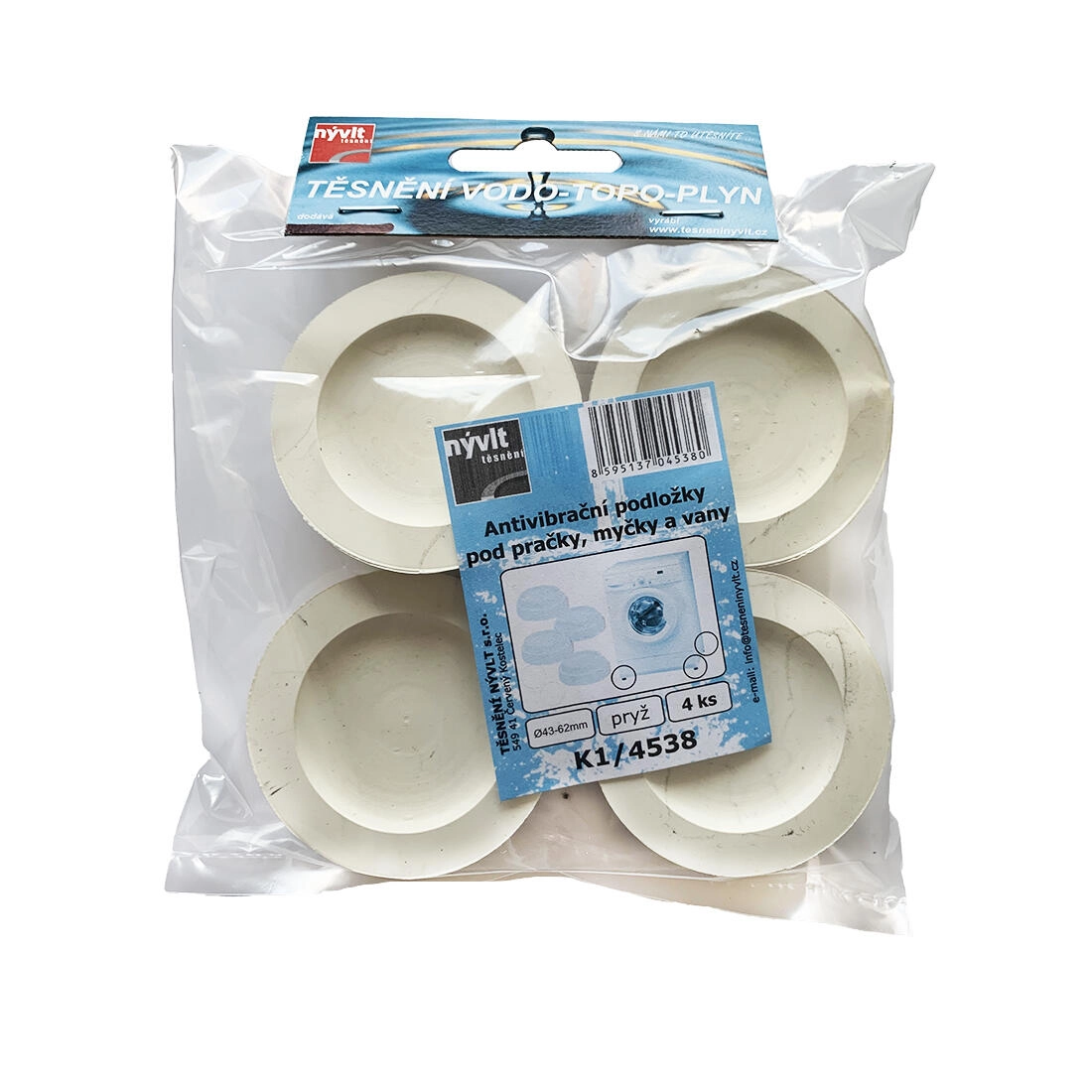 Disse antivibrationspuder er designet til at reducere støj og uønsket bevægelse af apparater under drift. Takket være velvalgte mål sikrer de stabil placering af fødderne og effektiv absorbering af vibrationer for både vaskemaskiner, opvaskemaskiner og badekar.