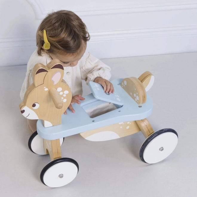 Træløbecyklen Rådyret tilbyder en robust konstruktion af bæredygtigt træ, som sikrer stabil bevægelse og tryghed for små ryttere.