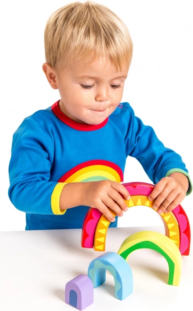 Træregnbuen fra Le Toy Van er inspireret af Montessori-principper og har fået sit navn efter sin farverige, stabelbare udformning. Fremstillet af solidt, bæredygtigt træ hjælper den børn med at udvikle kreativitet og finmotorik gennem legende stabling og konstruktion.