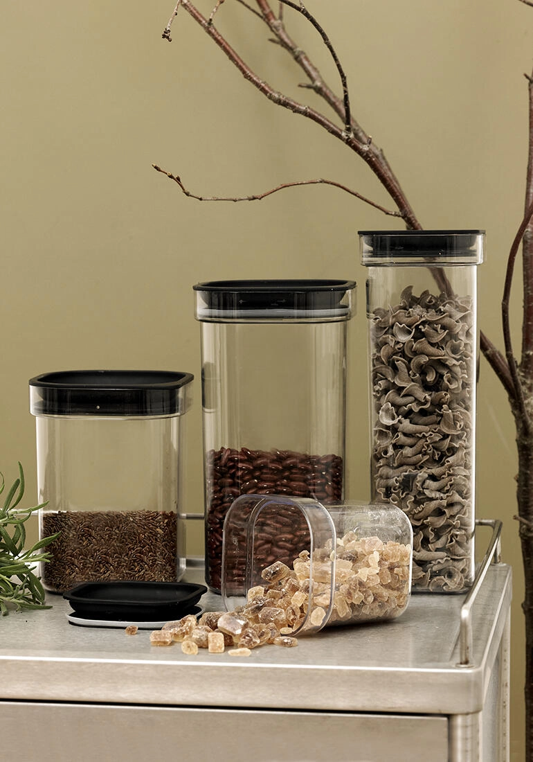 Ideel til mel, sukker, pasta, ris, bælgfrugter og andre tørre fødevarer. Med det stabelbare låg kan flere beholdere kombineres for at udnytte pladsen i spisekammeret effektivt. Holdbare materialer NAS / silikone / polypropylen sikrer lang levetid og nem vedligeholdelse.