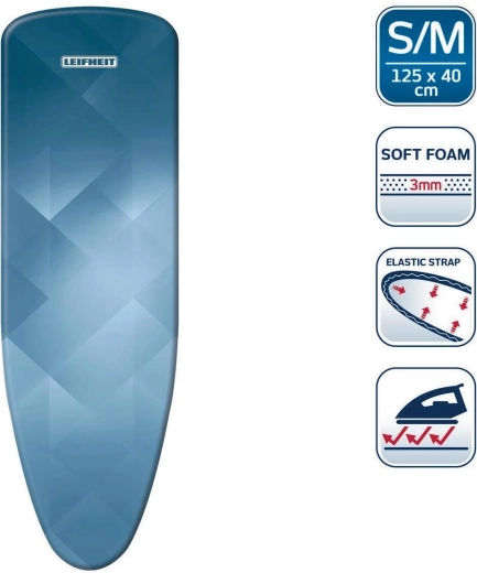 Gør strygningen lettere med LEIFHEIT Heat Reflect S/M. Den metaliserede overflade reflekterer varmen tilbage i tøjet, hvilket fremskynder processen og øger effektiviteten af dit strygejern. 3 mm skumpolstring udjævner små ujævnheder og sikrer jævn glidning uden krøller.