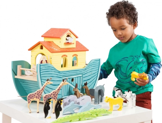 Den charmerende Noas ark fra Le Toy Van tilbyder en unik måde for børn at lære historien om Noas ark at kende, samtidig med at de nyder kreativ leg. Denne store ark indeholder ti par håndmalede dyr samt menneskefigurer, som også er hånddekoreret med miljøvenlige farver. Arken har et udtrækkeligt panel foran og en sideklapdør, der gør det nemt at få adgang til figurerne.