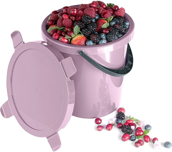 Takket være det praktiske håndtag bæres beholderen komfortabelt, og dens alsidige anvendelse værdsættes ved høst af bær, opbevaring af fødevarer samt ved forskellige huslige opgaver. Mix af farver (grå, skarlagenrød) passer nemt til dit øvrige udstyr.