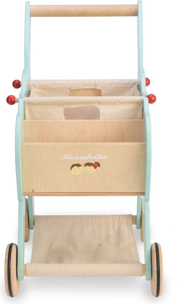 Giv børnene realistisk butikleg med LE TOY VANs træindkøbsvogn fra den prisbelønnede Honeybake-kollektion. Den robuste udførelse i bæredygtige materialer, glatte kanter og letkørende hjul sikrer en tryg og sjov “supermarkedstur” derhjemme og i børnehaven.