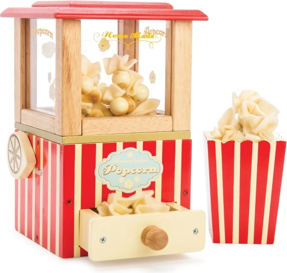 Træd ind i biograflegen med en detaljeret popcornmaskine, der lyser ethvert børneværelse op. Kombinationen af kvalitets massivt træ, en funktionel håndtagspop og tilbehør som filt-popcornstykker, skuffe og stribet æske fanger børn i legen i timevis. Der medfølger også biografbilletter og kort til sød/salt popcorn for endnu rigere rolleleg.