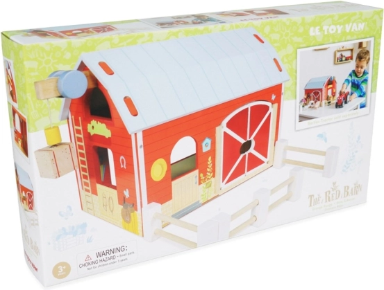 Oplev landidyl med den røde lade fra LE TOY VAN – en omhyggeligt udformet trælegetøjsmodel designet til langvarig leg. Børn vil elske de åbne porte, at kigge gennem vinduerne og den funktionelle magnetiske hejse med snor til at løfte “høballer”. De detaljerede illustrationer inde i og uden på laden understøtter rolleleg og udvikler kognitive færdigheder på en naturlig måde.
